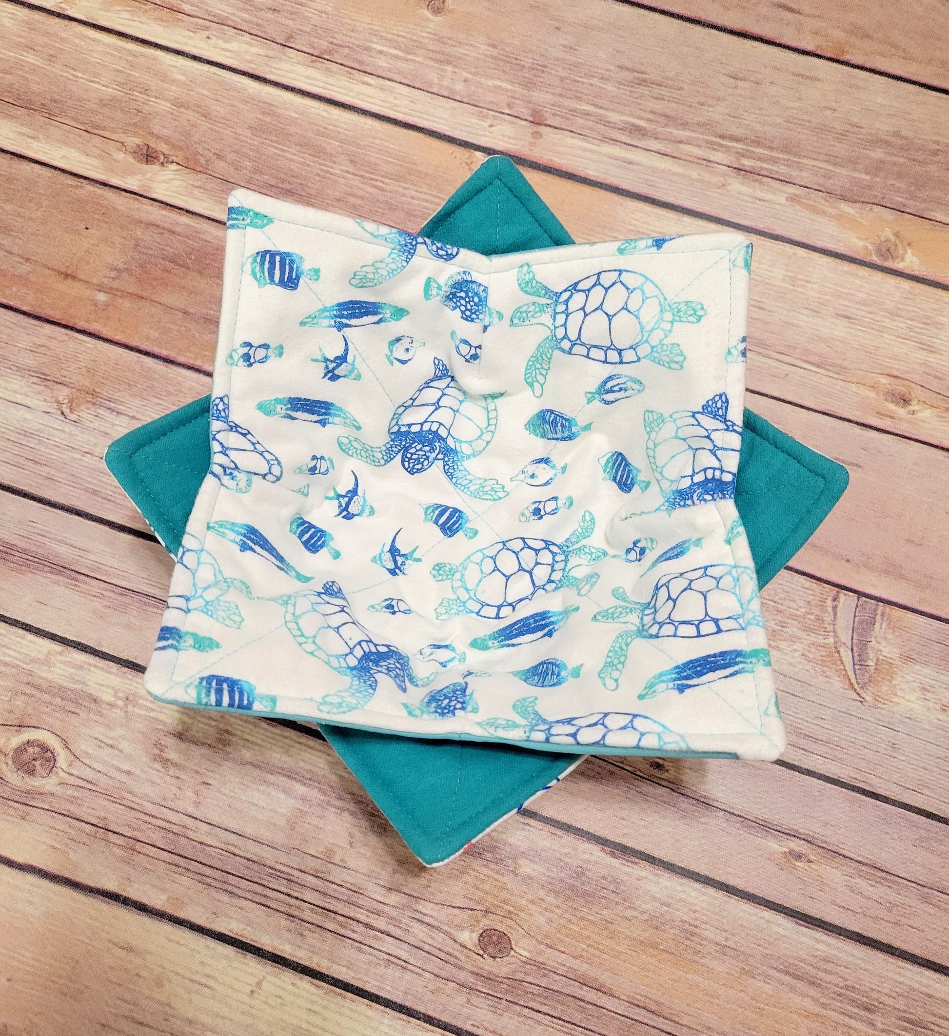 Sea Turtle Bowl Cozy | Turtles Hot Pad | Ocean Padded Holder